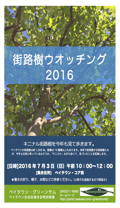 街路樹のことを知りたい方、ベイタウンの街を歩きたい方・・・コアアトリウムに集合!