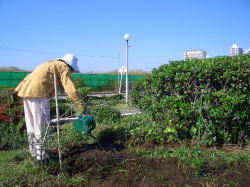 L字型の緑地のちょうど角にあたる場所。将来海側の未利用地が開発されれば、交差点にあたるので見通しを良くする必要があります。