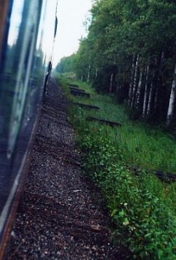 アラスカ鉄道は雨の中をゆっくりと
