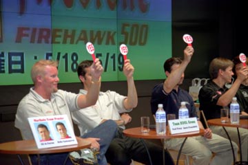 | トークショーの始まり、HONDAが優勝するかの質問には、もちろん全員YES。 | やはり、中野信治には熱い質問が、結婚相手は?の質問に照れる。 |