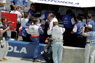 | スタッフと話すマイケル・アンドレッティ。 | こちらはポール・トレイシー。 |
