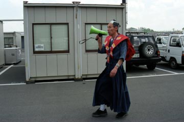 | パドックミニツアーのパス。 | 先導の係員、いかにも目立つ!。 |