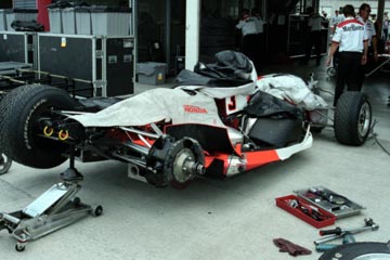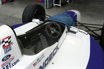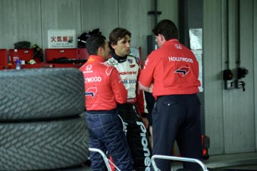 | ブライアン・ハータのマシン、F1に比べシンプルなステアリング。 | アレックス・ザナルディとトニー・カナーン、サインを貰える雰囲気では無い。 |