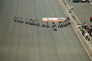 | エリオ・カストロネベスを先頭にコースイン。 | 歓声を受けHONDA勢が続く。 |