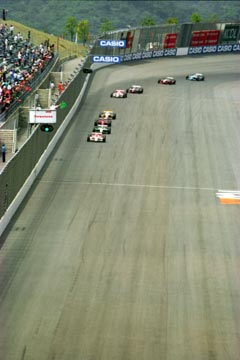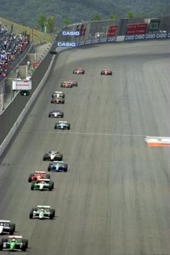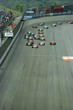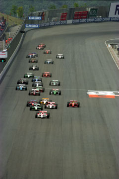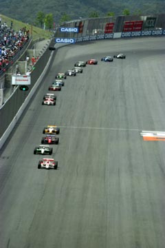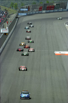 | ペースカーを先導にフォーメーション。 | ついにスタート。 | ポール・ポジションのエリオ・カストロネベスがそのままトップに。 |