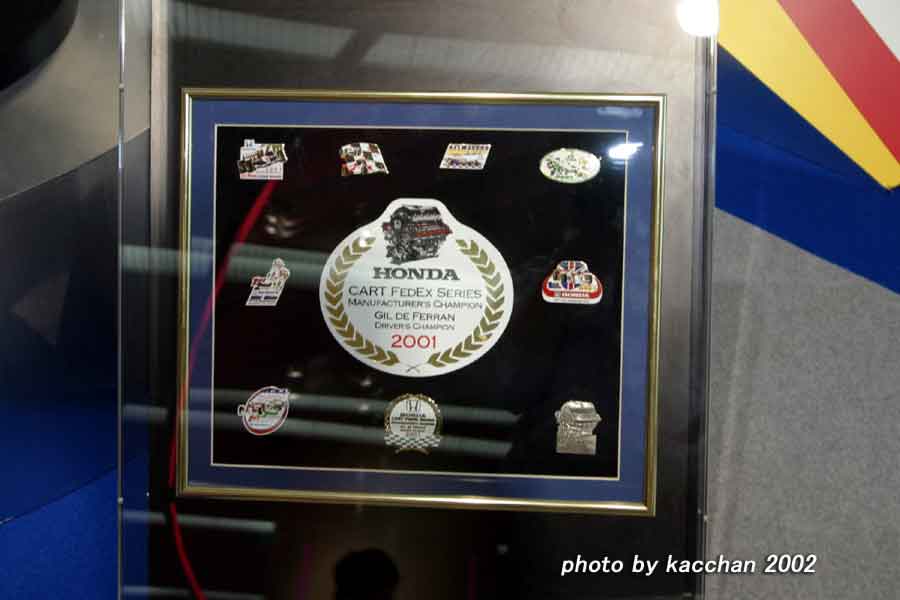 プロローグ 今年のCARTの観戦だが、仕事が忙しくなかなか決まらなかった。 年度末には毎日残業・・・、4月に入っても相変わらず残業の日々、休暇の予定が立たない。 そこで思い切って観戦ツアーの予約を入れてしまう事にする、後はこれを盾に休暇申請を強行だ。(^^;; 4月6日HONDAの青山本社ウエルカム・プラザにて予約、昨年同様予選決勝の2日間コースにする。 週明けに休暇を申請、意外と簡単に許可が出る。 【仕事はどうなる?後は知らないよ!】 ついでにHONDAドライバー壮行会のある23日も休暇を取る。 どさくさに紛れて・・・。 4月23日 朝から『サインを貰う為の写真』をプリンタ−でプリントアウト。 昨年の壮行会ではサイン会の時間が用意されていて、ほとんどのファンがサインを貰えた、今年は?。 15時過ぎ準備完了、青山のHONDA本社に向け出発。 17時前には青山に到着、18時のの壮行会開始まで暫しウエルカム・プラザの展示を見学。 |