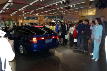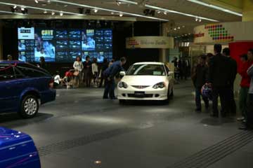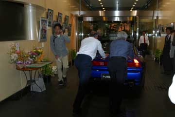 暫らくするとウエルカム・プラザに動きが・・・、どうやら壮行会の為に会場準備が始まる様子。 展示車両のは搬出作業が行われる。 |