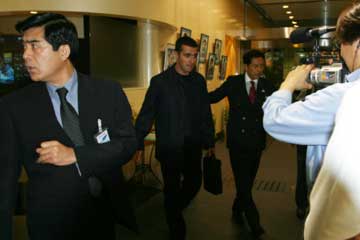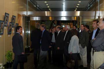 | そんな中お待ちかねのCARTドライバー達が到着、奥の控え室に消える。 | |