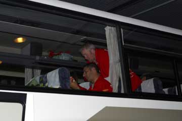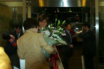 | 通路に一同を追いかけると、中野信治がファンと話をしていた。 皆はすでにバスの中、その後直ぐに発車。 | |