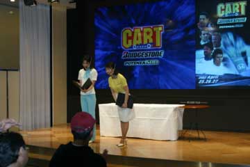| ドライバーの帰った会場では、残ったファンにサイン・グッズの抽選会。 | |