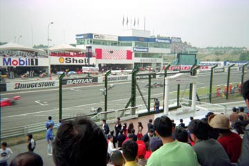 | F3マシンが西コースのピットから移動して来る。 | レース中のマシン、・・・でも流し撮りは出来ないな〜。 |
