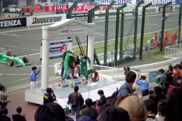 | 入賞者の表彰式。 | 恒例のシャンパン・ファイト。 |