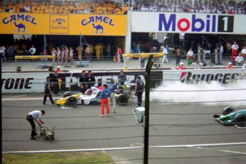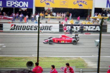 | F1マシンのコースイン、先ずフェラーリのマンセルから。 | 続いてラルースのフィリップ・アリオーが。 |
