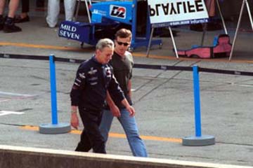 | グランド・スタンドの正面入口からピットに向かう、ルーベンス・バリチェロ。 | プロストのチームスタッフと歩く、オリビエ・パニス。 |