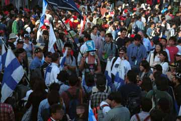 | フィンランド国旗が集合。 | 良く観るとフィンランド人の応援団。 |