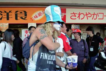 | ビールを飲んで気勢を上げる。 | 日本のミカ・ファンとフィンランド国歌?を歌っていた。 |