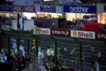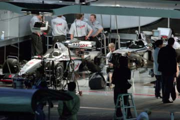 | ミカ・ハッキネンはピット内に戻る。 | フェンスには日本人のファンの姿も。 |
