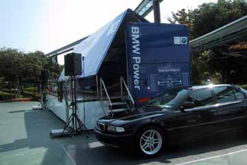 | まだ静かな遊園地内。 | BMWブースをチェック。 |
