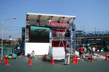 | ベネトン、今年はマシンには乗れないな〜。 | おっ!、TOYOTAも展示スペースが。 |