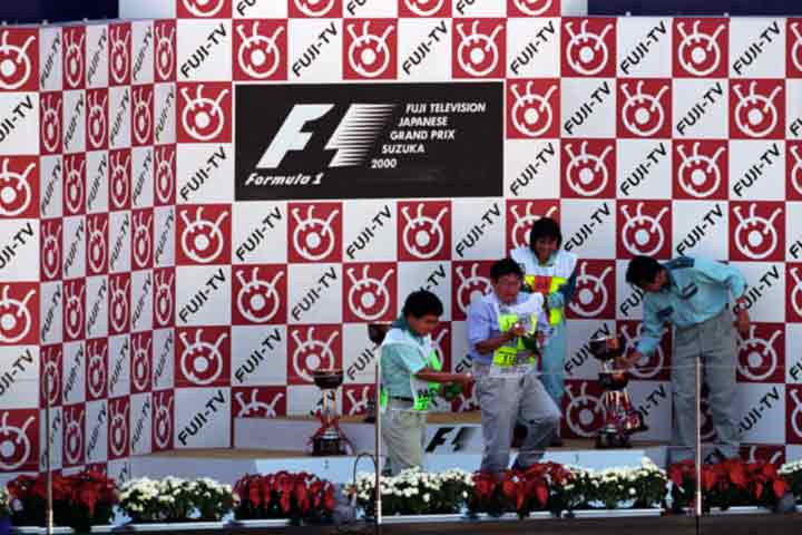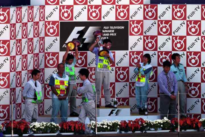 トップ・チームのピット位置が1コーナーに変わった為、S1エリアで見学する人達が例年に比べ少ない。 でも、ドライバーや関係者が通るのを見るにはこちらしかない。 毎年観戦記のタイトルに使用する、表彰台の写真を撮る事にするが・・・あれっ!。 |