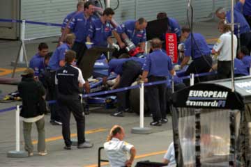 | ファン-パブロ・モントーヤも登場し見守る中行われるウイリアムズ。 | |