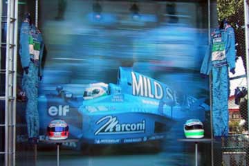 続いてマイルドセブンに。 あれ!、今年からマイルドセブンもタバコの配布を止めている、マルボロは数年前から自粛していたので予想はしていたけど、ただで貰えるお土産として重宝していたのに・・・。 残念だがこれも時代の流れか。 (でも自分ではタバコは吸わないので、基本的には賛成だったりして・・・複雑な心境。) 代わりにステッカーと抽選の参加券を貰う、一等はベネトン・ドライバーのヘルメットとレーシング・スーツだ。 でも籤運が悪く抽選の参加にも外れる(T_T)、ステッカーをお土産代わりにする為に帰りにも又挑戦しよう。 |