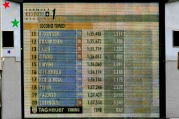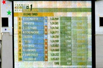 2日目はラルフ&モントーヤのウイリアムズ・コンビが1.2位!。 クルサード3位、ミハエル4位、バリチェロは9位、期待のHONDA勢はトゥルーリが6位で一人気を吐く、初日トップのアレジは13位・・・。 |