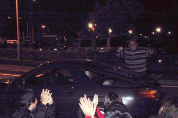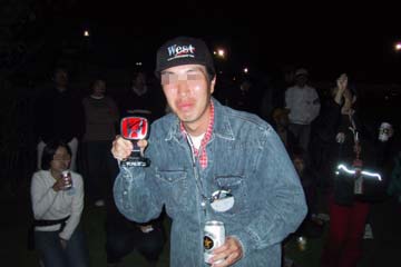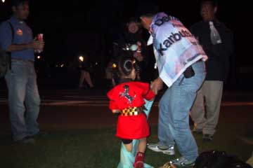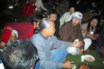 | 車に戻り、友人達全員で夕食(宴会)開始、別駐車場の友人達が戻る為20時前に解散。 20時半より、駐車場が同じ友人と2人のみで、けんさわオフ会に参加。大宴会で楽しく過ごす。 少し送れて来たけんさわさん、いきなりジャンケン大会を宣言。 賞品はジャン・アレジの200戦記念プライベートTシャツとHONDAのエンブレムに佐藤琢磨のサイン入り。 当然の如くすぐに負ける、残念・・・・・。 |