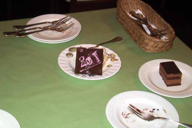 | パーティ終了後のレストランにて、ケーキをご馳走になる。 |