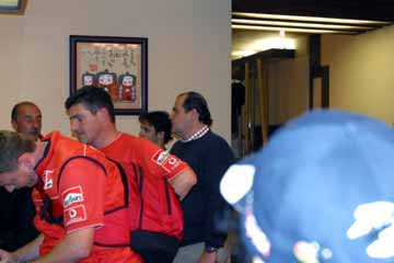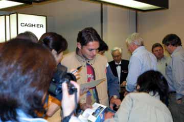 | ジャンカルロ・フィジケラも続いて登場。 | 皆並んで順番にサインをお願いする。 |