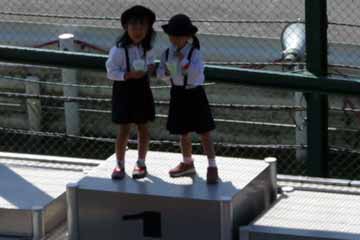 | 遠足?の子供達も表彰台でポーズをとる。 | |