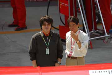 | ピット内の観客が多くて殆んどマシンは見えない。(T_T) | 今宮純さんも見学していました。 |
