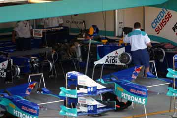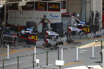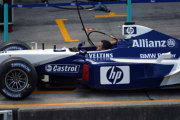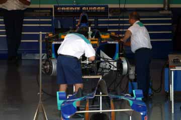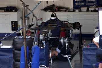 | ウイリアムズ、工具箱のカバーで控えめにマシンをガードしている。 |