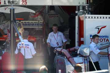 表彰台ではリハーサルが行われてる頃、S1スタンド正面に位置するTOYOTAのピット内では首脳会議が行われていた。 HONDAファンですが、何故かチーム・マネージャーのアンジュ・パスカーリを応援してます。(^^;;; |
