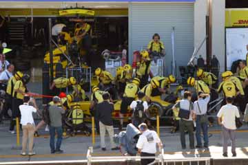 昨年は、殆んどのチームがピットインの練習を行っていたが、今年は余り目立たない。 私が来る前に終わってしまったのか?。 |