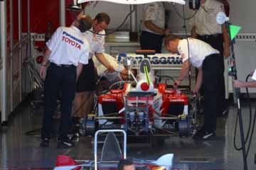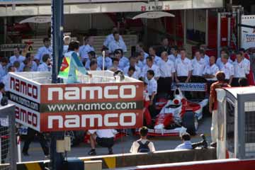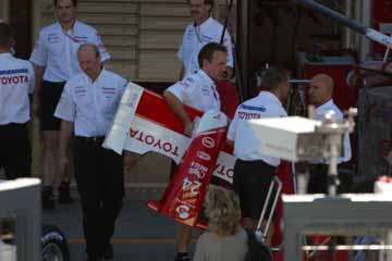 TOYOTAのピット前に人が集まり始める、どうやら記念撮影を行うみたいだ。 私もその様子を見学する為に、再び場所を移動する。 |