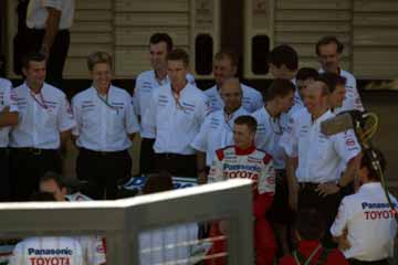 本当なら皆笑顔で最終戦の記念撮影をするはずだが・・・2人が可哀想。 ミカ・サロはデビュー戦も鈴鹿で観たし、最後も鈴鹿になるので、それを見とどける事が出来た・・・。 |