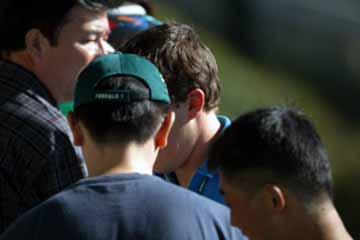 | グランド・スタンドの通路を突き抜けるアロンソ。 | ファンの求めに応じサインをする。 |
