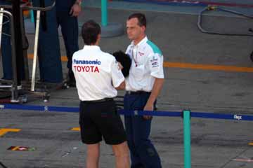 | TOYOTAのスタッフと会話、真面目な表情。 | 先程のもじゃもじゃ頭はスキンヘッドの同僚とお仕事。(^^;;; |