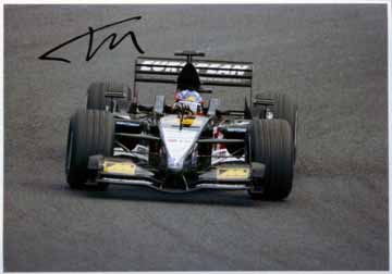 今日はそろそろ観戦を終了して、車に戻り夕食(宴会)を始める事にする。 帰り際グランド・スタンドを出て歩き始めると、前方より思わぬ人を発見。 何と先程のアロンソが戻って来たのだ。 思わずカメラを友人に預け(放り投げ?)、写真を用意してサインを貰う。 |