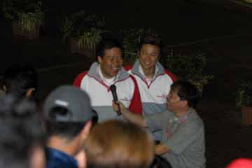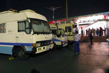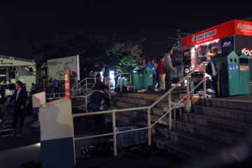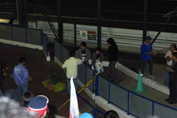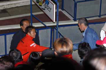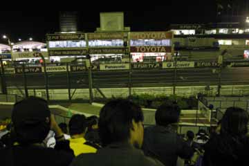 | 楽しい時間が過ぎ21時頃解散。 グランドスタンド裏では、フジTVがスポルトの生中継の準備を行っていた。 | |