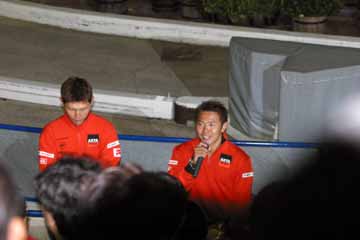 | 途中にはF1関係者が横を通り抜ける、今年何度目かの遭遇フェルナンド・アロンソです。 | HONDAスタッフからは『明日のエンジン音を聞いて下さい、今日より一段と良い音がします!』と心強い言葉が飛び出る。 |