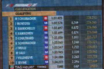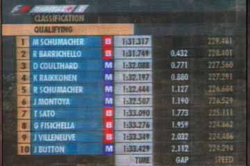 予選再開、ミハエルのポール・ポジションを阻止出来るか?マクラーレン&ウイリアムズ勢。 そして佐藤琢磨とHONDA勢は・・・。 |