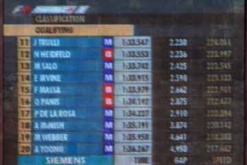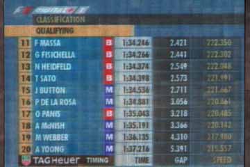 HONDA勢は次第に順位を上げて行く、しかも佐藤琢磨が頑張っている!、場内のファンも盛り上がる。 予選終了、今回もフェラーリが強さを見せ付けフロント・ロー独占、以下カーNo通りの上位の結果。 |