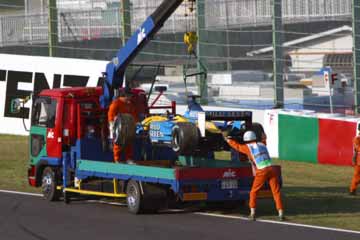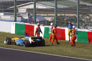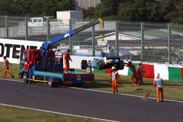 予選終了直後、ジェンソン・バトンが2コーナー過ぎでストップ。 |