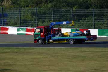 | トラックにマシンを回収。 しかし、フロントに人が乗らなくてもマシンが水平!、今のエンジンが軽くバランスが良い為か?。 | |