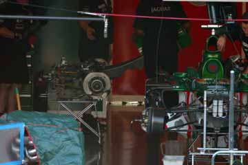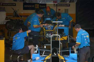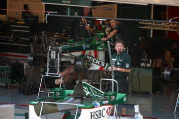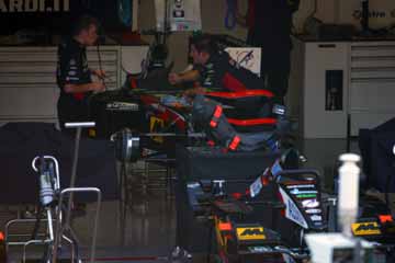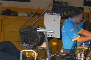 ピットに戻る琢磨を見送った後、再びピットを見学する。 次は下位テームだ。 |