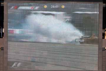 | フィジケラのジョーダンが豪快なエンジン・ブロー!!!。 | |