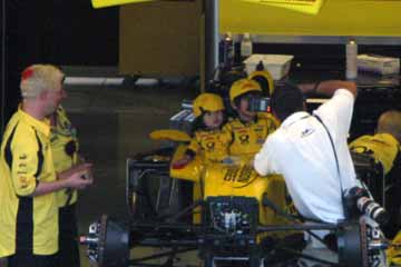 | そんな中、ミナルディのピットでは『 聖者の行進 』の再演が始まる。 始めは少なかった観客も・・・。 | |