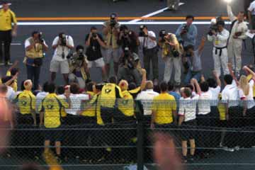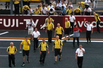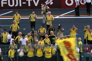 | 先ず、ジョーダンとHONDAのスタッフがグランドス・スタンド前に集合する。 | |
